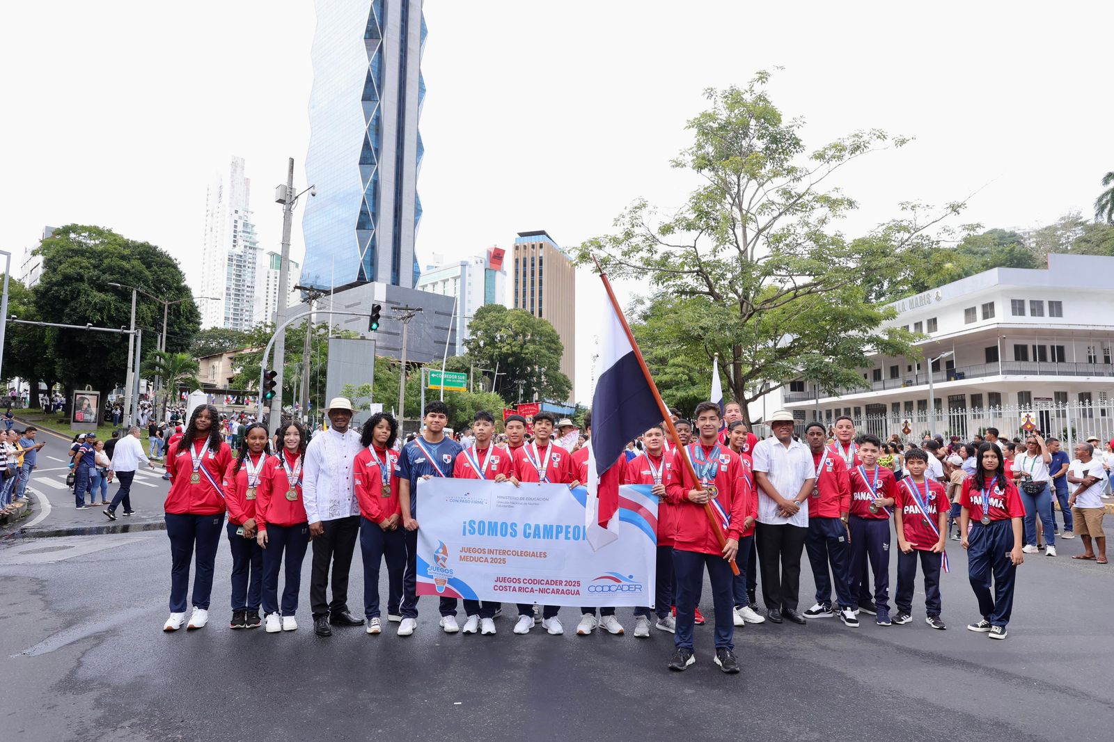 Los abanderados fueron 15 estudiantes que tuvieron destacada participación en los Juegos Codicader 2025 de Costa Rica. Entre estos atletas estaba Sebastián Castillo, campeón nacional e internacional de karate; Jesús Valencia, delantero del Instituto Rubiano, que representó a Panamá en fútbol; José Moscote, del equipo de tritones que ganó 5 medallas de oro en Costa Rica; además, un grupo de ajedrecistas que fueron campeones en el nivel primario en Nicaragua y los de premedia, quienes ganaron el torneo costarricense.