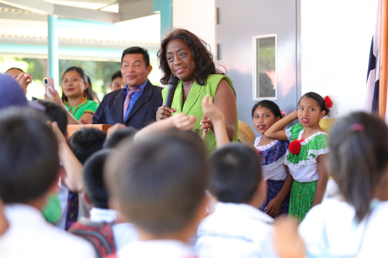 La directora regional de Educación de la comarca Ngäbe Buglé, Ley Dis Tugri, participó en la entrega de las nuevas estructuras educativas, destacando el impacto positivo que estas obras representan para la comunidad escolar.