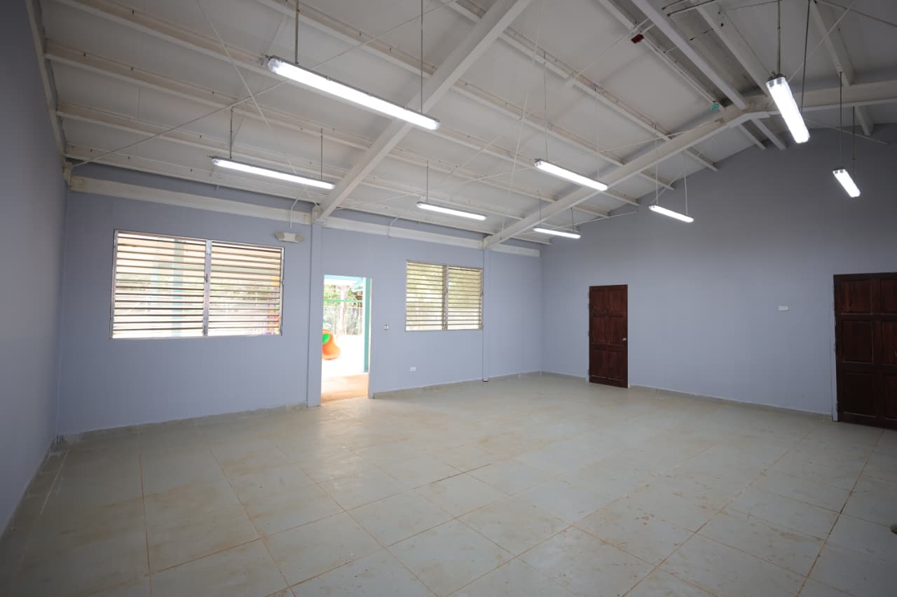 Además, se realizaron trabajos de remodelación en cuatro aulas existentes, que contemplaron acabados de piso en pasillos, mejoras en puertas y ventanas, así como la modernización del sistema de iluminación, consolidando espacios más seguros, funcionales y adecuados para el proceso de enseñanza y aprendizaje.